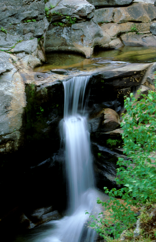 Screw Auger Falls is a pretty little section of Grafton Notch State Park. The falls themselves aren't particularly high or impressive, but they're still nice. One of the great things is that you're allowed to walk right up to one of them--unlike most national parks. The real "screw auger" falls into a canyon, so you can't get real close to that one, but it looks like plenty of people walk up the canyon from further downstream. Trails go in many directions; you can follow them upstream or downstream; there are even several trials from the parking lot to the falls. Still, the main trails aren't difficult to discern; follow these and you'll find the falls pretty quickly. It's not a long walk to the falls, so if you've gone more than a quarter mile, you'll know you took a wrong turn someplace! The setting is also very serene. There are several picnic tables and picnic shelters right next to the stream, which is quite quiet above the falls. It would be a lovely place for a picnic or to spend a warm day. I visited in May, so it was a bit chilly. Still, snow melt makes the waterfalls nice and full this time of year!