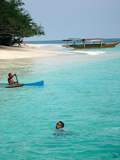 The Gili Islands are an archipelago of three small islands — Gili Trawangan, Gili Meno and Gili Air — just off the northwest coast of Lombok, Indonesia.The islands are a popular destination for tourists looking for a remote island experience. Each island has several small resorts, usually consisting of a collection of huts for tourists, a small pool and restaurant. Most local inhabitants live on Trawangan in a township stretching along its east side just inland (which is also where most recent development is taking place). Automobiles and motorised traffic is prohibited on the islands by local ordinance, so the preferred method of transportation is by foot and bicycle or the horse-drawn carriage called a cidomo. Diving in and around the Gilis is also popular due to the abundance of marine life and attractive coral formations.